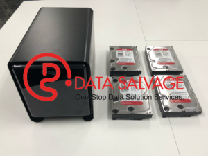 内部のHDD4台を専用機材にて接続し、RAIDを再構築後データ抽出を行い、